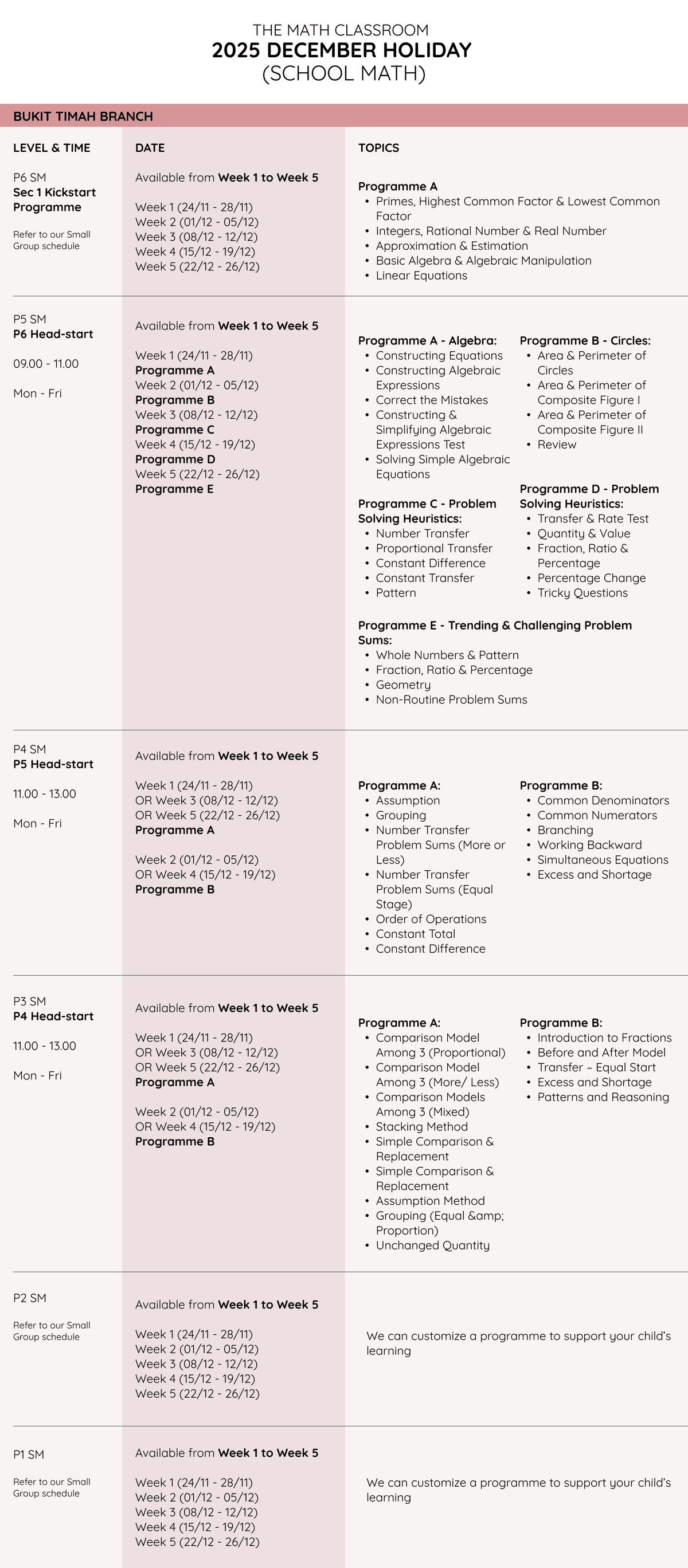 Competition Math and School Math students of all levels can signup for our Small Group Classes